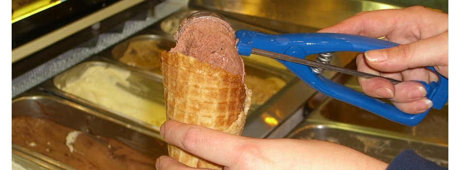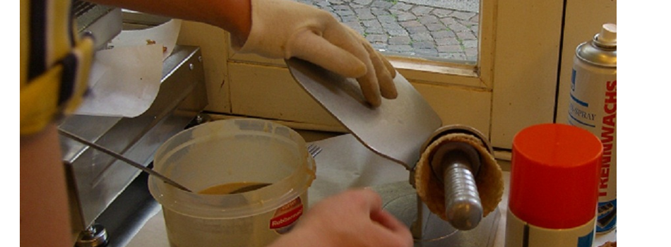 Elisabeth Krauss suchte damals nach einer Möglichkeit den Kunden neben der Herstellung des Speiseeises im Laden auch noch frisch gebackene Eishörnchen anzubieten. Die Erfindung der Zimtwaffel ergab sich nach unzähligen Versuchen schließlich aus einem Rezept für Neujahrskuchen Ihrer Mutter.